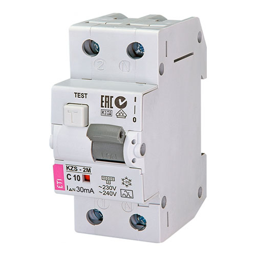 Автоматичний вимикач диф.струму KZS-2M C 10/0,03 тип AC (10kA) - у диференційному автоматі суміщені два пристрої автоматичний вимикач (захист від струмів короткого замикання і перевантаження) і диференціальне реле або пристрій захисного відключення (захист від ураження струмом при випадковому дотику до провідника).
