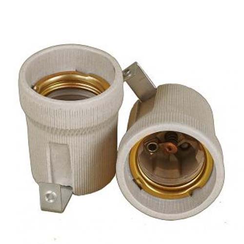Патрон Е-27 керамічний з планкою - електропатрони керамічні, карболітові та пластикові широко застосовуються в побуті та цивільному будівництві для монтажу освітлювальних приладів та приєднання енергозберігаючих ламп та ламп розжарювання з різьбовим цоколем Е14, Е27 або Е40 до електричної мережі. Контактні групи набоїв виконані з електротехнічної латуні.