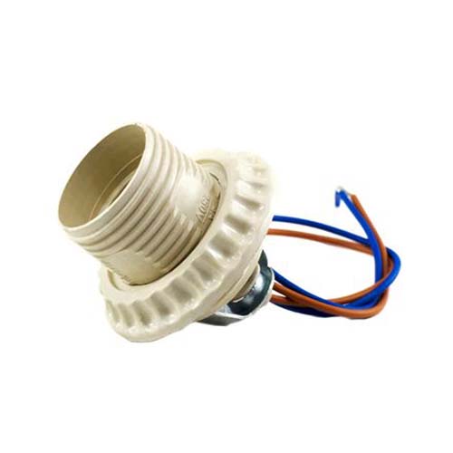 Патрон Е-27 пластік з проводом - електропатрони керамічні, карболітові та пластикові широко застосовуються в побуті та цивільному будівництві для монтажу освітлювальних приладів та приєднання енергозберігаючих ламп та ламп розжарювання з різьбовим цоколем Е14, Е27 або Е40 до електричної мережі. Контактні групи набоїв виконані з електротехнічної латуні.