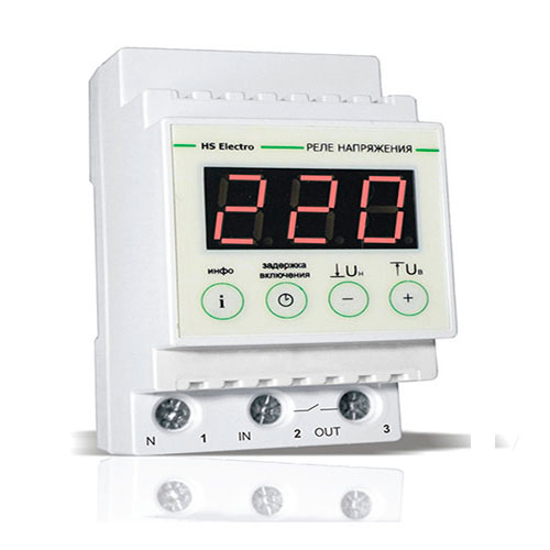 Пристрій контролю напруги УКН-25с Hs-Electro - постійно контролює рівень напруги в мережі 220В і відключає навантаження якщо його значення виходить за допустимі межі.Це дозволяє захистити електроапаратуру від зниженої та підвищеної напруги, тим самим запобігти її вихід з ладу і продовжити термін служби.