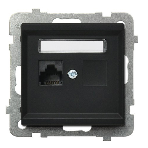 Розетка комп'ютерна без рамки Sonata Чорна - колекція SONATA відповідає найвищим технологічним стандартам, а також є комплексним і функціональним дизайнерським рішенням. За основу даної модульної серії прийнято виразну і просту форму квадрата.