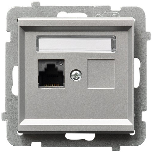 Розетка комп'ютерна без рамки Sonata Срібло матове - колекція SONATA відповідає найвищим технологічним стандартам, а також є комплексним і функціональним дизайнерським рішенням. За основу даної модульної серії прийнято виразну і просту форму квадрата.