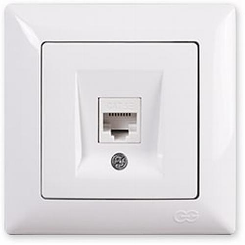 Розетка комп'ютерна VISAGE Біла - від турецького виробника електрофурнітури Gunsan Electric є оптимальним поєднанням ціни та якості. А ряд серій та колірних рішень дозволять встановити їх у будь-який інтер'єр. При досить не високій ціні, розетки та вимикачі Gunsan відповідають усім європейським стандартам, дуже зручні при монтажі, виготовляються з негорючого термостійкого пластику, що не виділяється отруйного диму.