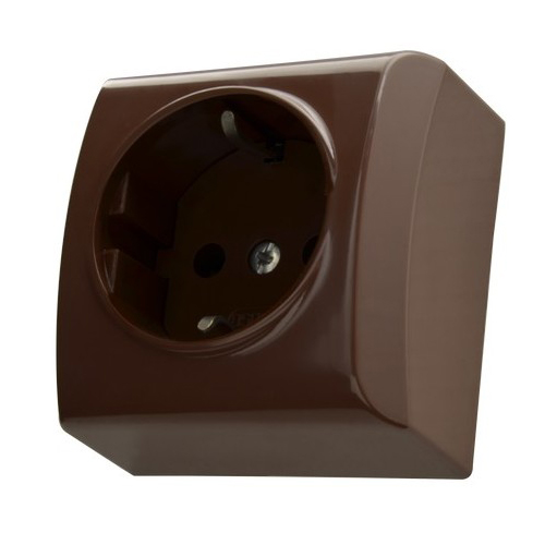 Розетка одинарна із заземленням зовнішня BIS коричнева - це традиційна серія поверхневого монтажу невимушеного стилю. Асортимент гарантує оснащення інтер'єру необхідними вимикачами та розетками. Ця серія ідеально підійде до технічних приміщень.