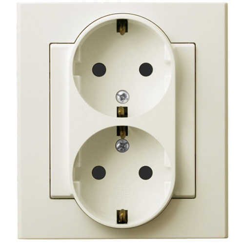 Розетка подвійна із заземленням Sonata крем - колекція SONATA відповідає найвищим технологічним стандартам, а також є комплексним і функціональним дизайнерським рішенням. За основу даної модульної серії прийнято виразну і просту форму квадрата.