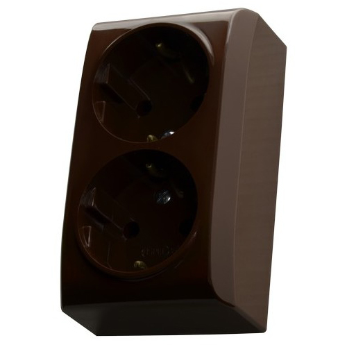 Розетка подвійна із заземленням зовнішня BIS коричнева - це традиційна серія поверхневого монтажу невимушеного стилю. Асортимент гарантує оснащення інтер'єру необхідними вимикачами та розетками. Ця серія ідеально підійде до технічних приміщень.