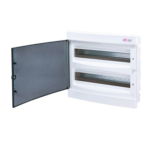 Щит внутр. розподільчий ECМ 2x18 PT (36мод.проз.дверці) (2x18мод.) - застосовуються в житловому та промисловому будівництві для монтажу захисних, сигнальних та розподільчих пристроїв модульного виконання та забезпечують ступінь захисту IP 40.