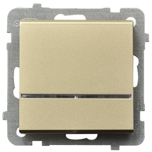 Вимикач 1-й з підсвіткою без рамки Sonata Золото - колекція SONATA відповідає найвищим технологічним стандартам, а також є комплексним і функціональним дизайнерським рішенням. За основу даної модульної серії прийнято виразну і просту форму квадрата.