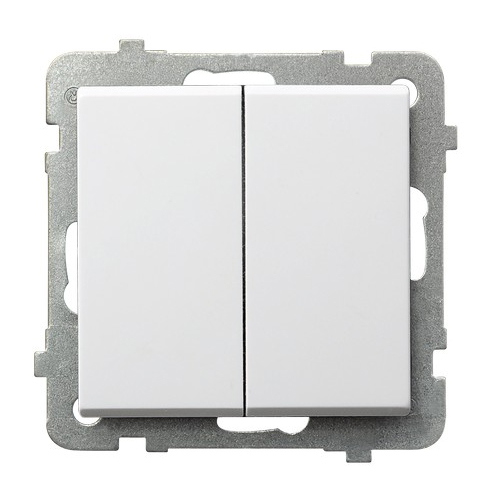 Вимикач 2-й без рамки Sonata Білий - колекція SONATA відповідає найвищим технологічним стандартам, а також є комплексним і функціональним дизайнерським рішенням. За основу даної модульної серії прийнято виразну і просту форму квадрата.
