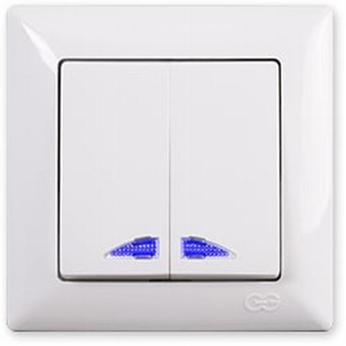Вимикач 2кл. з підсвіткою Visage Білий - від турецького виробника електрофурнітури Gunsan Electric є оптимальним поєднанням ціни та якості. А ряд серій та колірних рішень дозволять встановити їх у будь-який інтер'єр. При досить не високій ціні, розетки та вимикачі Gunsan відповідають усім європейським стандартам, дуже зручні при монтажі, виготовляються з негорючого термостійкого пластику, що не виділяється отруйного диму.