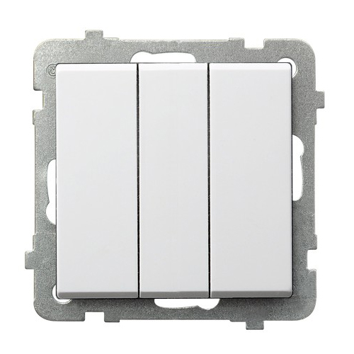 Вимикач 3-й без рамки Sonata Білий - колекція SONATA відповідає найвищим технологічним стандартам, а також є комплексним і функціональним дизайнерським рішенням. За основу даної модульної серії прийнято виразну і просту форму квадрата.