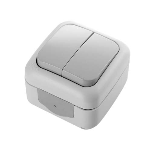 Вимикач подвійний зовнішній Viko Palmiye Сірий - зовнішня серія Palmiye зі ступенем захисту IP54 виготовлена ??для приміщень, що потребують особливої ??уваги та захисту від пилу та вологи. Продукція серії Palmiye може монтуватись як горизонтально, так і вертикально, відрізняється довговічністю, надійністю. Серія Palmiye виробляється у білому та сірому кольорах, даючи можливість вибору відповідно до декору приміщення.