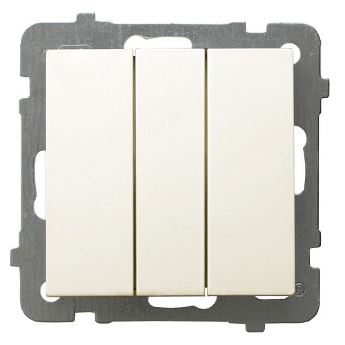 Вимикач потрійний без рамки AS Крем - геометрична форма, що супроводжується легкою кривизною рамок. Це поєднання динамічного дизайну та нейтральної колірної гами, яке підійде до будь-якого інтер'єру. Високоякісні матеріали та позачасовий дизайн дозволили створити виріб, який стане окрасою інтер'єру на довгі роки.